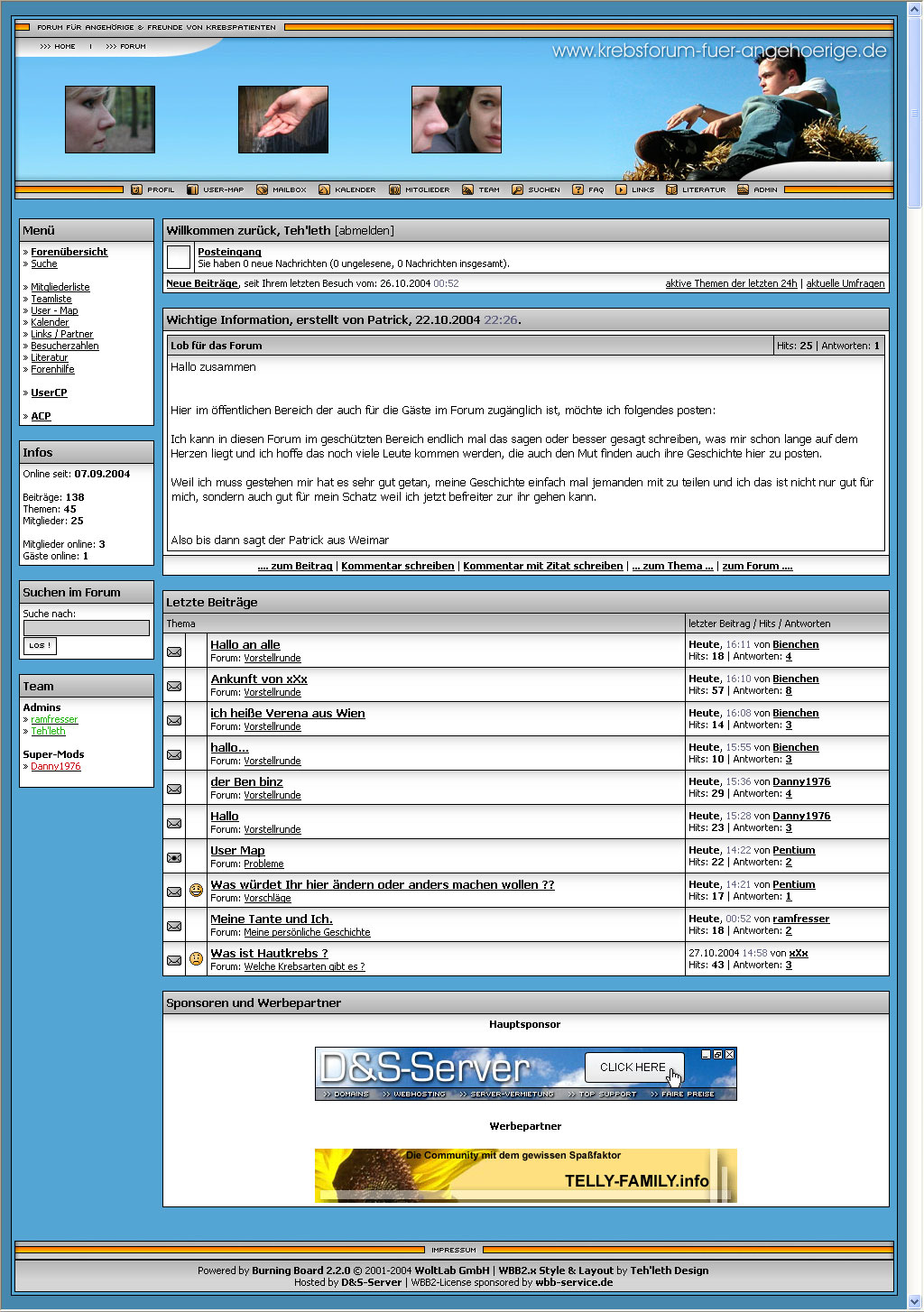 Heller Style mit blau/weisser Farb-Kombination, dezent zum Thema gehalten. Eine abgewandelte Form von diesem Style wurde für das Schwesterforum krebsforum-fuer-hinterbliebene.de erstellt.